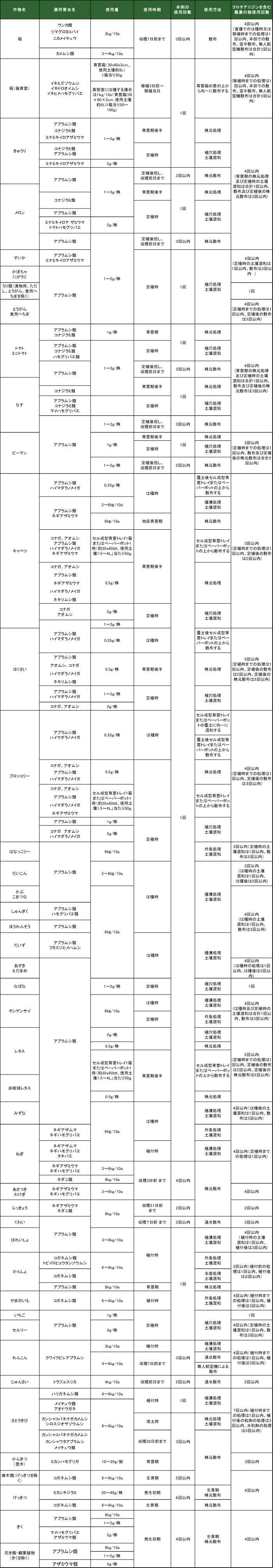(注)本剤の使用に当っては取扱メーカーの要覧や製品ラベルを必ず参照してください。