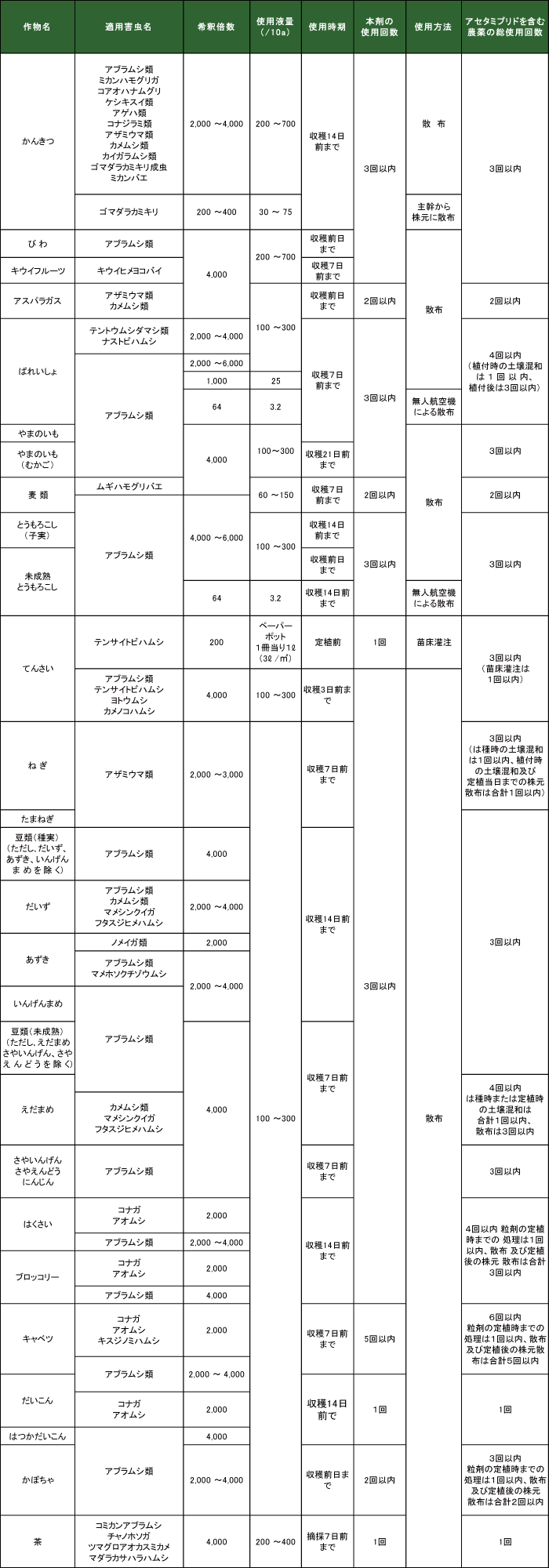 (注)本剤の使用に当っては取扱メーカーの要覧や製品ラベルを必ず参照してください。